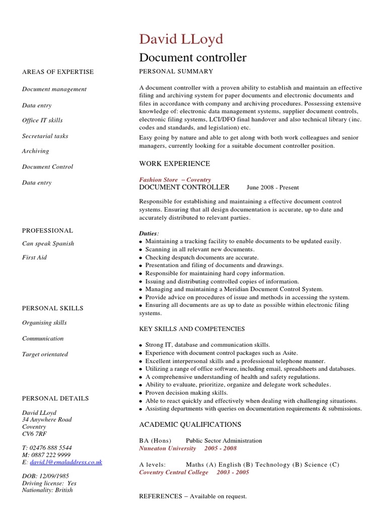 Cv For Document Controller : Successful resume samples emphasize qualifications such as.. Ability to perform regular audits on corporate documents. Document controller cv sample/asif laxman/29 any road, any city/01299 1234134/alaxman1000@anymail.com professional summary a fully qualified document controller, i am familiar with all the procedures needed to keep records and logs of document retrievals in a modern business environment. Ability to keep clear and accurate records and reports. Resume.io has been visited by 100k+ users in the past month What can a document controller do for sharepoint?